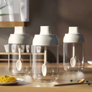 タグ付き防湿カバースプーン一体型調味料ボトルキッチン密封ガラス調味料瓶MSG塩ボトル調味料ボトル在庫あり