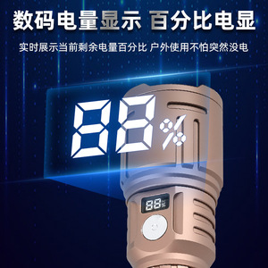 超長時間持続する屋外用強力懐中電灯、超高輝度、長距離照射、電池残量表示、LED、屋外用充電式、伸縮ズーム機能付き