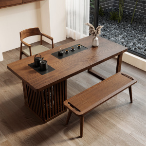 阳台实木茶桌简约现代家用客厅办公小茶台北美白蜡木茶盘茶几一体