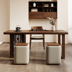 【推荐套装四】1.6米白蜡木茶桌+广岛椅+2张皮革凳