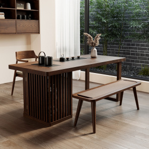 【推荐套装十】1.8米白蜡木茶桌+广岛椅+1.8米白蜡木长凳