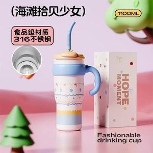 新しい車用アイスカップ、見栄えの良いガーリーな大容量のダブルストローカップ、フィルター付き316ステンレススチールカップ
