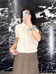 25春夏南友高精細凱旋門ラペル半袖ニットカーディガン中空ジャカード年齢軽減痩身トップトレンディブランド