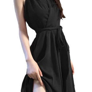 Pure Lust レッドホルターネックドレス女性のための 2025 早春の新しい A ラインロイヤルシスターウエストストラップスリムミドル丈スカート