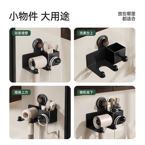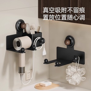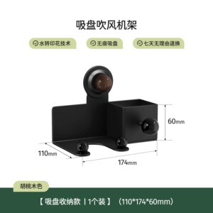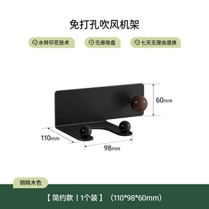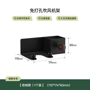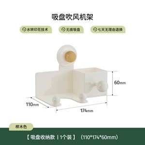 ヘアドライヤー収納 ヘアドライヤーホルダー ヘアドライヤーラック 穴あけ不要 吸盤壁ウォールウォールナットカラー 吊り下げ固定ブラケット