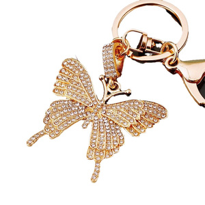 ヨーロッパとアメリカのカラフルなクリスタル蝶キーホルダー金属合金クリエイティブダイヤモンド女性のバッグペンダントキーチェーンリングギフト