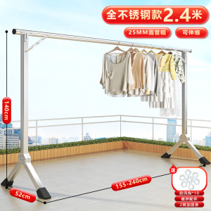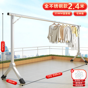 強化ステンレスモデル 1.55-2.4m 伸縮式【モップ掛けなし乾燥】中・高構成 - 防風フック付き