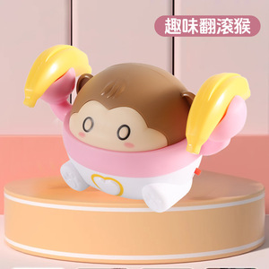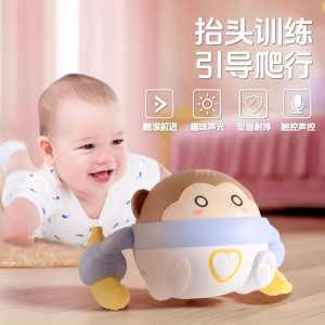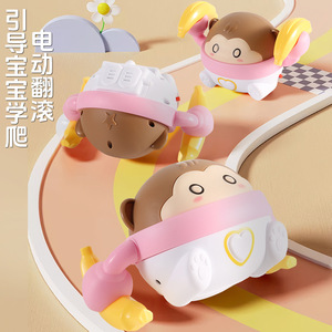 抖音電動回転宇宙猿知育玩具、光と音楽付き、頭を上げて這う練習、充電式おもちゃの猿