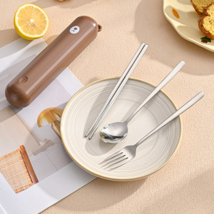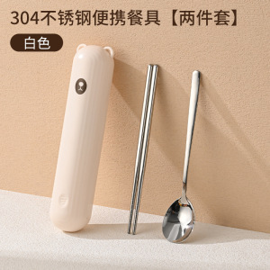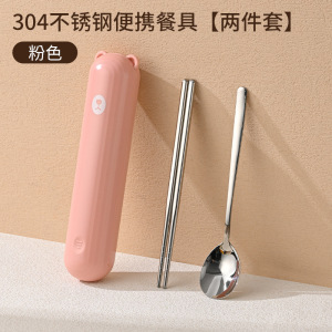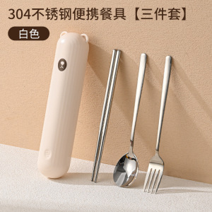 304 ステンレス鋼ポータブル食器セットクリエイティブ円筒ポータブルボックススプーンフォーク箸学生ランチ食器キャンプ