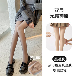 女性用ベアレッグアーティファクト、秋冬ヌード感超自然二重層ベルベット厚手ストッキング、フェイク半透明肌色レギンス、パンスト