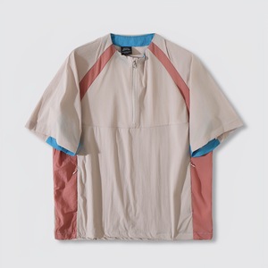 【岩彩シンフォニー】マウンテン系 男女兼用 コントラストカラー スポーツ 速乾 夏 機能性 ハーフジップ 半袖 Tシャツ 8431