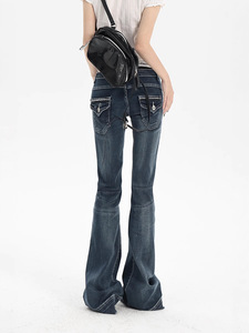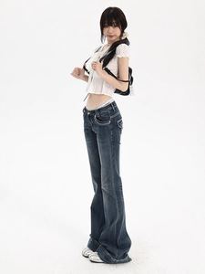 ローウエストマイクロフレアジーンズ レディース 2025年秋 アメリカンスタイル ストレッチ スリムフィット 美脚効果 ホットガール マキシ丈フレアパンツ