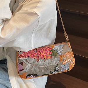 クロスボーダー 2025 新しいハンドバッグハイエンドカラフルなスパンコールレトロ中国風の女性のハンドキャリーハイエンドショルダーバッグ