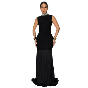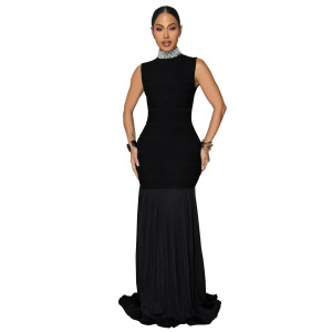 C7409 クロスボーダー AliExpress Amazon ヨーロッパとアメリカのファッションレディーススプライシングプリーツ気質スリムバブルビーズドレス
