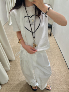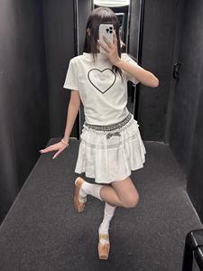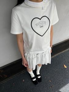 マーチェンラブ半袖25新作レース刺繍(取り外し可能な襟)ショートカット右肩レタープリントトップス