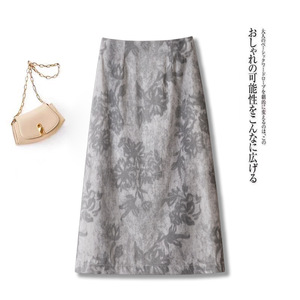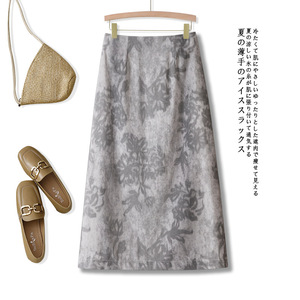 テンセルスカート女性のための 2025 夏の新しい A ラインスカートハイエンド多用途絶妙なプリントバックスリットストレートスカート