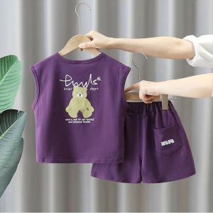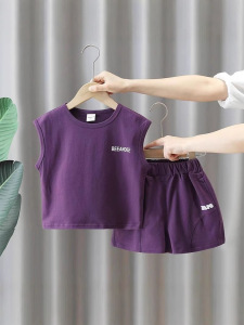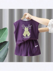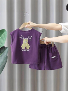 男の子の夏のベストスーツ 2025 新しいファッショナブルなベビー夏のノースリーブ服子供ハンサム 2 点セット