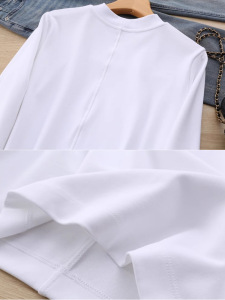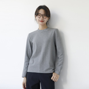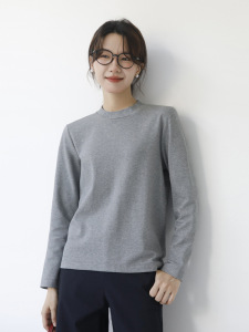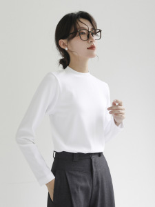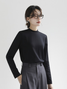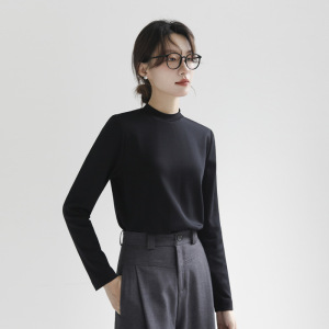 ミニマリスト純綿小衿Tシャツ レディース 長袖 通勤 ゆったり 着痩せ効果 ハーフハイネック インナー トップス