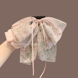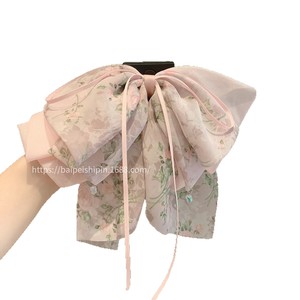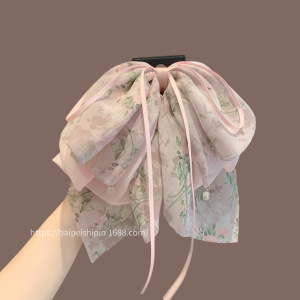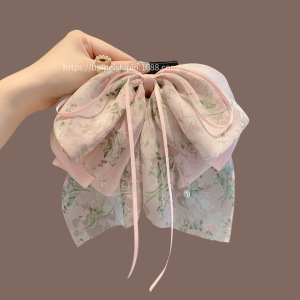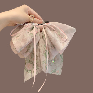 甘くて爽やかな花柄のハーフタイ、小さなクリップ、中国風の妖精のリボン、ふわふわのリボン、ポニーテール、ファッショナブルで多用途なヘアアクセサリー