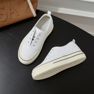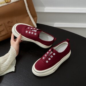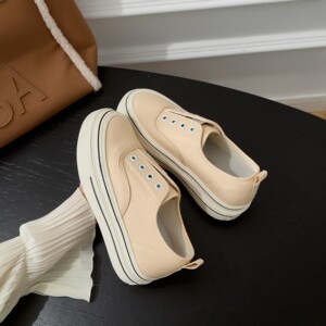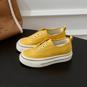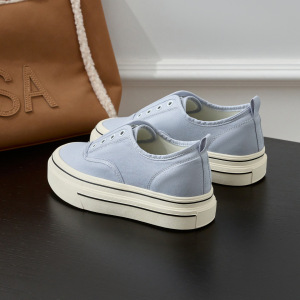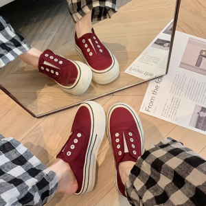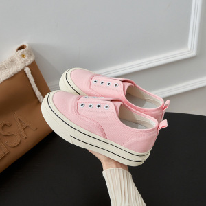 女性用厚底スリッポンキャンバスシューズ2025夏ネットセレブラウンドトゥシューズ多用途インナー高さカジュアルレースアップスニーカー