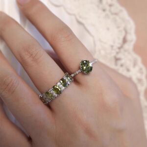 シルバー オリーブ グリーン オーバル リング