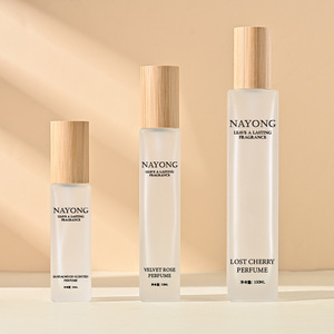 现货30ml-100ml竹木盖四方喷雾瓶 磨砂玻璃分装瓶螺口按压香水瓶