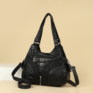 クロスボーダー女性の新しいファッションレトロ大容量ハンドバッグシンプルで多用途な織りショルダーバッグPUソフトレザークロスボディバッグ