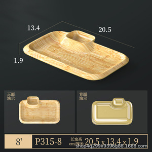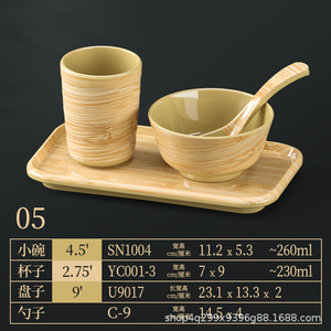 メラミン模造木目食器セット 4 ピースプレートとボウル鍋レストランおかずプレートビュッフェプレート竹模様のラウンド長方形プレート