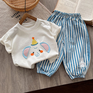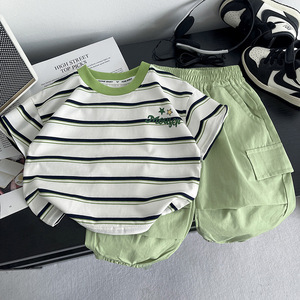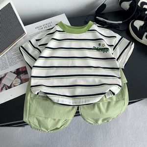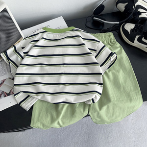 男の子服男の子夏スーツ 2025 新しいクールでハンサムなスポーツ子供薄い半袖ズボン男の子夏のトレンド