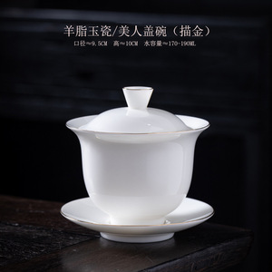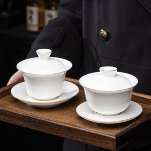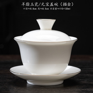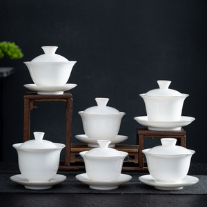 徳化白磁茶器、羊脂翡翠三才蓋ボウル、陶磁器カンフー茶ボウル、火傷防止蓋ボウル、ロゴ入りティーカップ