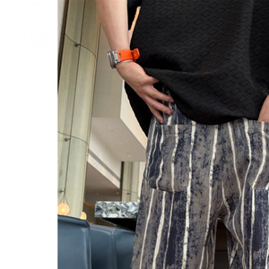 夏のメンズトレンディな縦縞の絞り染め薄いドレープ通気性カジュアルパンツルーズでファッショナブルなマイクロテーパードワイドレッグパンツ