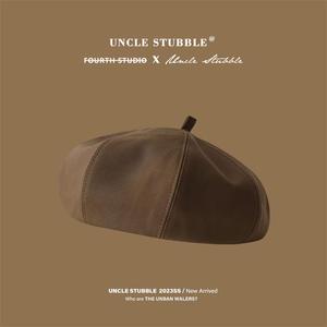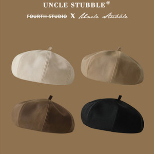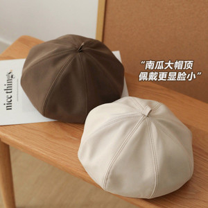 韓国風の大きな八角形の帽子、女性用、レトロな多用途の無地のペインターハット、文学的なインスタイルの顔が見える小さなベレー帽