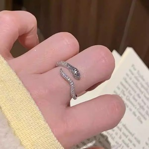 高级设计感蛇形戒指女超闪下镶钻开口可调节食指戒网红同款指环