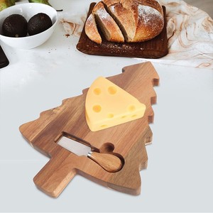 新しいチーズボードセットアカシア木製クリスマスツリー型まな板ナイフとフォーク付き木製チーズまな板朝食プレート