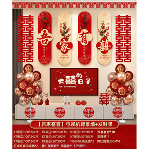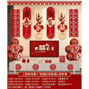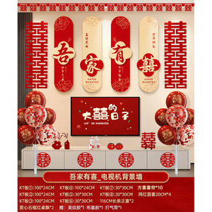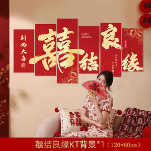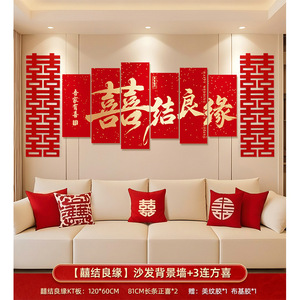 中型【囍結婚囍】ソファ背景壁+3連Fangxi