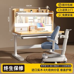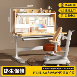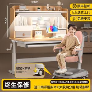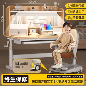 子供用学習テーブル、小学生用デスク、昇降式目の保護ライティングデスク、無垢材の宿題テーブル、家庭用テーブルと椅子のセット