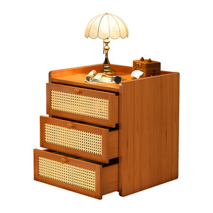 プラスチック籐ベッドサイドテーブル 3 層 40 ブラウン