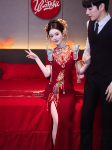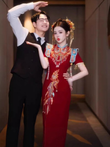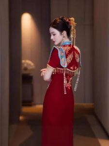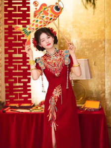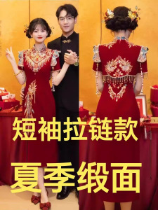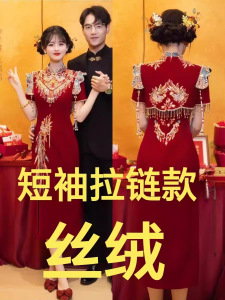[新しい中国風デザイン] 2025 春の新しい中国風の結婚式のチャイナドレス、小さな花嫁のための絶妙な婚約ドレス