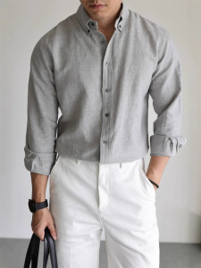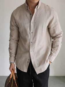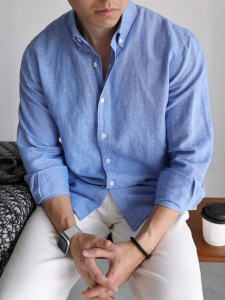 アメリカンコットンとリネンのワークシャツメンズ通気性スリム長袖ビジネスカジュアル通勤シャツリネン日焼け止めカーディガン薄手