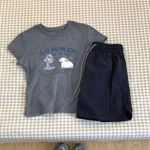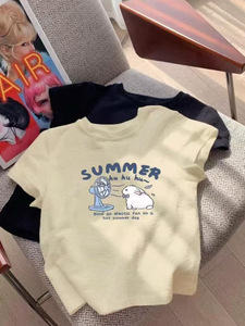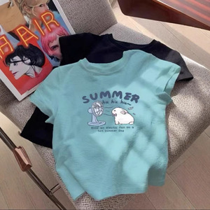 2025 夏の新漫画かわいいウサギのプリントデザイン半袖 Tシャツカジュアル多用途半袖トップ女性のための