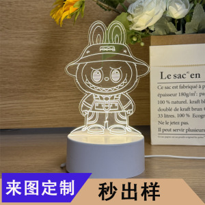 Labubu 3d ナイトライトアクリルテーブルランプ漫画人形装飾品ギフトデスクトップ LED ランプ寝室発光