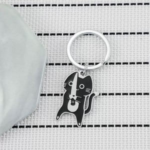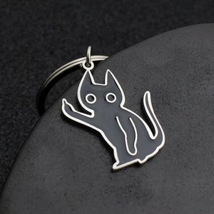 国境を越えた売れ筋キティキーホルダー漫画ステンレス鋼キーホルダー中指黒猫ペンダント