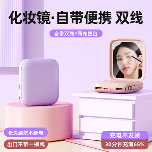 工場卸売化粧鏡パワーバンク 10000 mAh ミニコンパクト内蔵ケーブルモバイル電源ギフトカスタマイズ