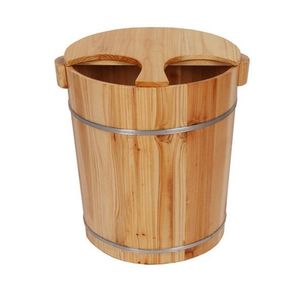 高さ40cmの無垢材丸縁フットバス木製バケツ、蓋付きフットバス木製バケツ、厚みのある燻蒸バケツ、フットバスバケツ、家庭用フットバスショップ