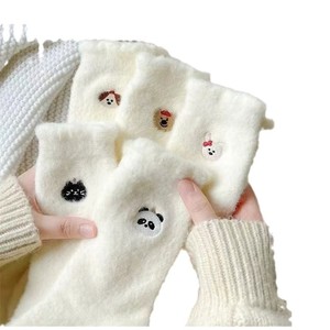 秋と冬の厚いベルベットの暖かいミッドチューブソックス漫画かわいい冬白ぬいぐるみ厚い靴下女性の睡眠靴下卸売