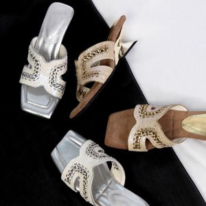 シープスキンバージョン~新しいレトロニッチウェッジウーブンサンダル、フェミニンなスクエアトゥ、美しいビーチサンダル