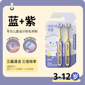 【ブルー+パープル】子供用三面C型ラップクリーン柔らか毛歯ブラシ