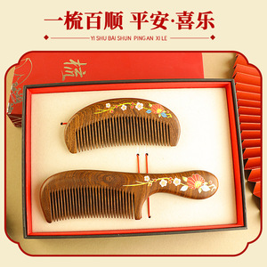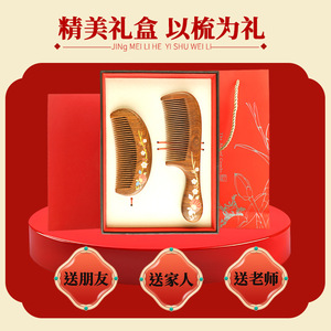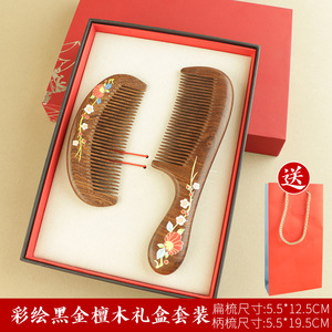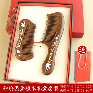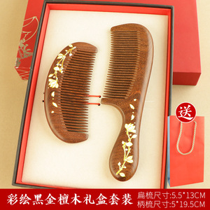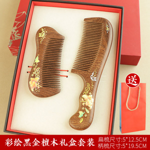 黑金檀木印花梳子顺发不打结女士专用送母亲木梳礼盒美发梳伴手礼