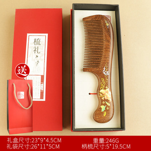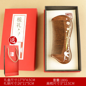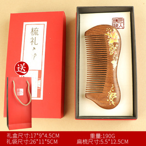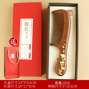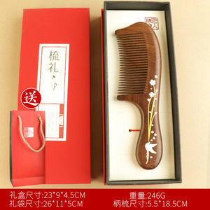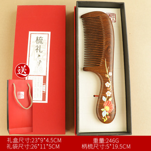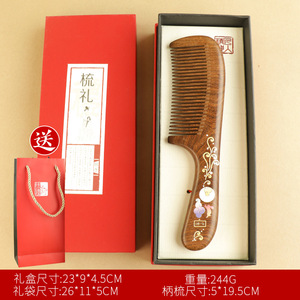 红花-印花月梳+柄梳+礼盒礼袋