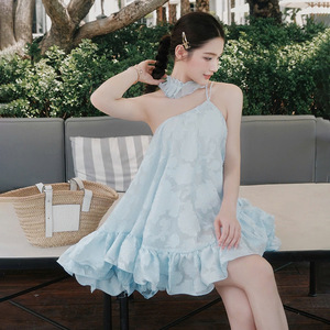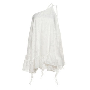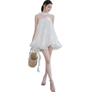 2025 ヨーロッパとアメリカの夏のクロスボーダー新しいスタイルスリムで優しいスタイルソリッドカラーの斜め肩ノースリーブバックレス不規則なドレス女性用